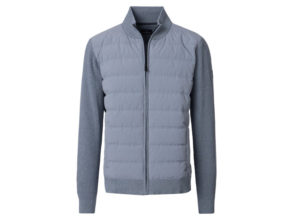 Cardigan v moderním provedení kombinuje pletené rukávy s prošívanou přední částí. Pohodlný střih se zapínáním na zip je ideální pro každodenní nošení i sportovně-elegantní outfit.